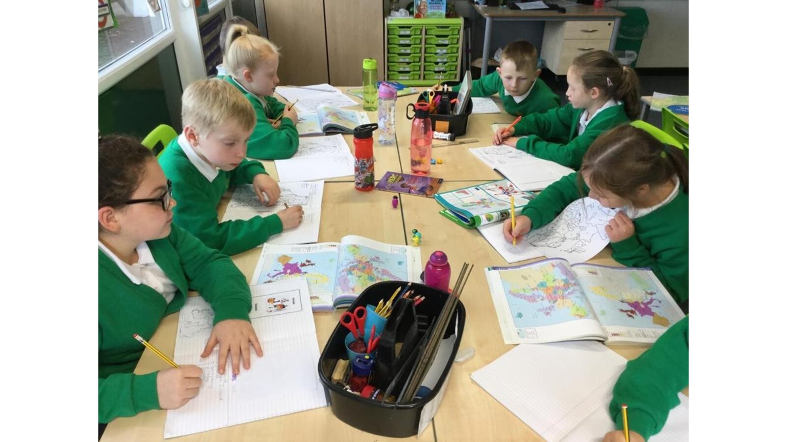 As part of our new topic on Europe, the class have been learning the names and location of countries in Europe using atlases.