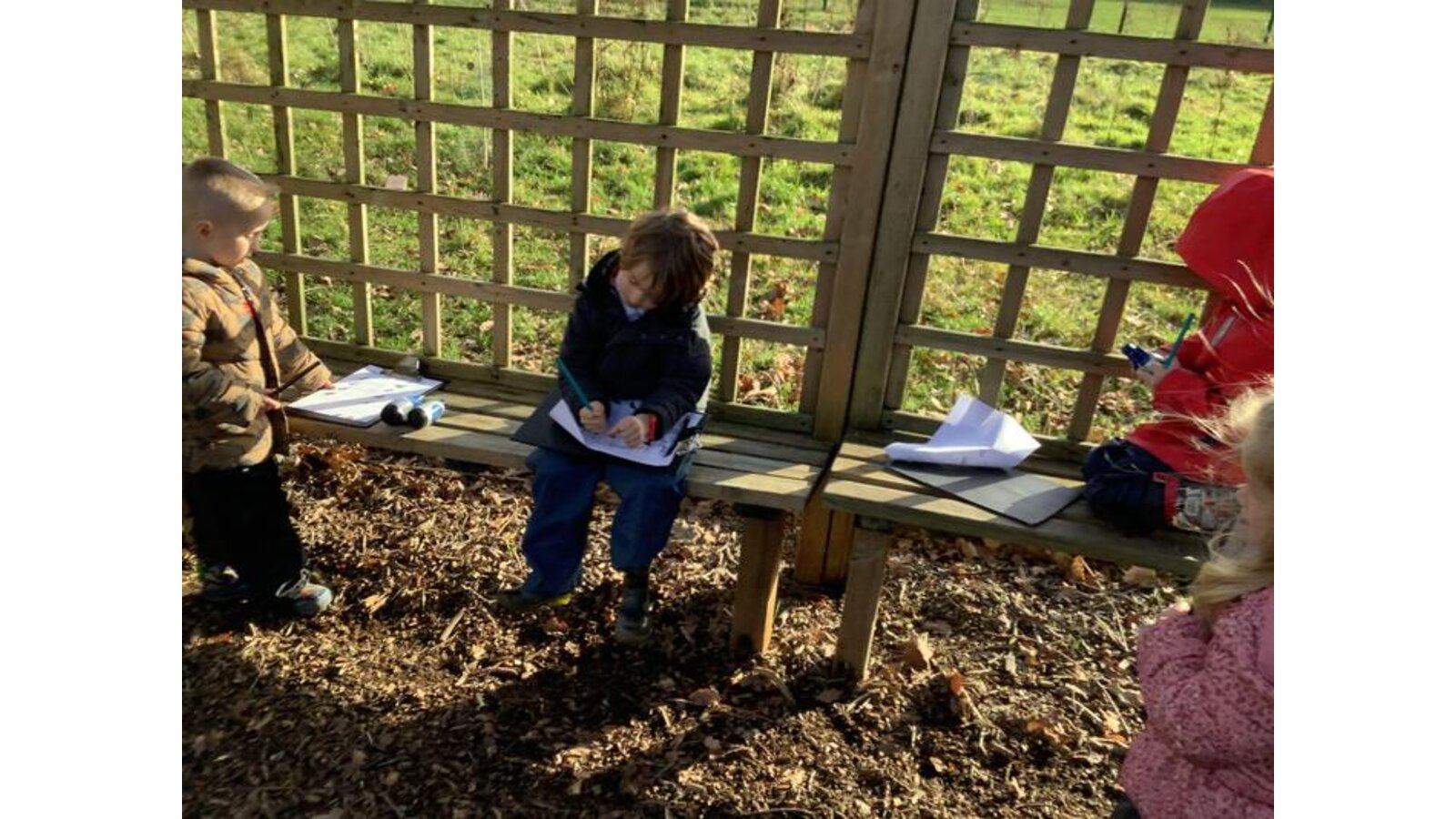They have learnt about different types of garden birds, done some detailed observational paintings and used their number skills to count how many birds we saw in the woods.